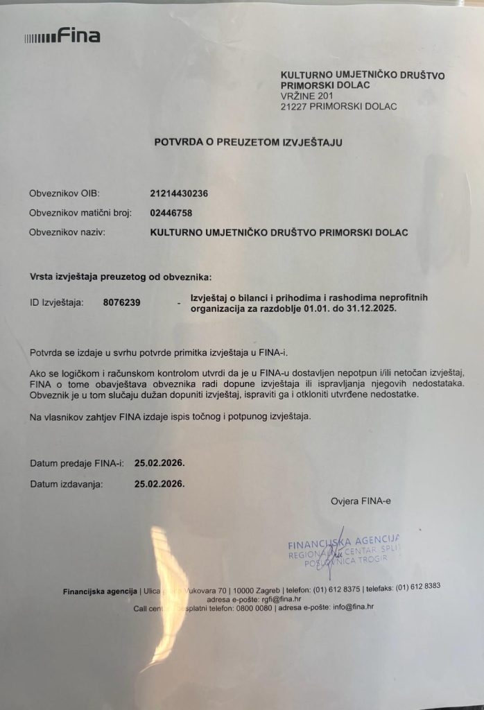 „Sadržaj publikacije/emitiranog materijala isključiva je odgovornost Kulturno umjetničkog društva Primorski Dolac “